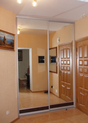 За Хрушчови с дълъг коридор тесните плъзгащи се гардероби са идеални. По -добре е, ако такава конструкция има дълго огледало, вградено в крилото на вратата. Това ще създаде огледален коридор и ще запълни коридора със светлина, правейки го по -просторен. Този дизайн не изисква място за отваряне на вратата и следователно е много икономичен по отношение на пространството..