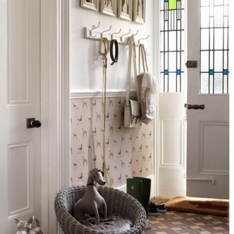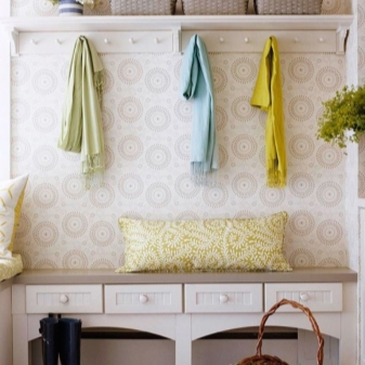 Ако вашият избор падна върху тапети, опитайте се да потърсите евтини модели без ефекта на велур, кадифе, гланц. На тях не трябва да се показват пайети, абстракции и поп арт отпечатъци. Флорални мотиви, ненатрапчиви малки флорални шарки, контрастни ивици или полка – това са основните идеи за създаване на “фон” в коридора.