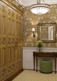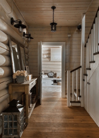 При избора на мебели се доверете на професионалния вид на дизайнер, който няма да пропусне нито един детайл. Дървени рамки, свещници, изящни дръжки на вратите, полилей с ковашки елементи – това ще направи вашия коридор буквално изложбена зала. Гостите ще бъдат очаровани от общата атмосфера, въпреки факта, че сте закупили обикновени дървени мебели и дори не скрихте драскотини, неравни повърхности.