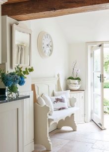 Няколко меки кресла ще бъдат достатъчни в коридора в провансалска атмосфера. Обърнете внимание какви материали избирате, как комбинирате цветовете и дали всички мебели са обработени, за да дадат очарователен ефект на „стареене“.