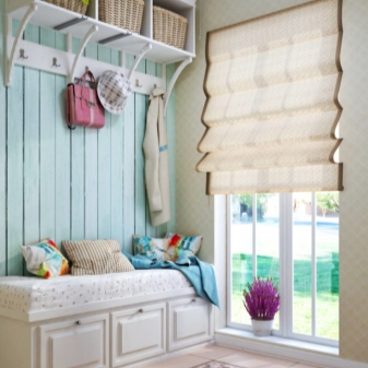 Ето широка цветова палитра за стила на Прованс. Комбинирайте общия интериор на коридора и отделните му елементи: закачалки, гардероби, пейки, подови огледала, шкафове и различни драперии.