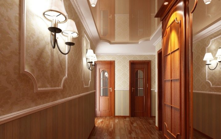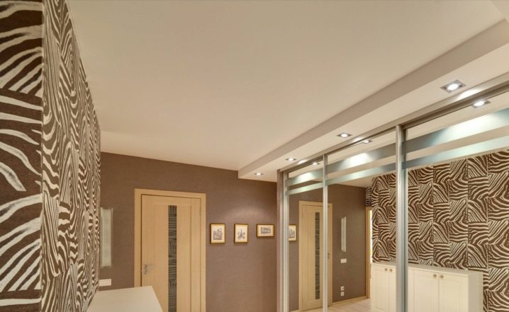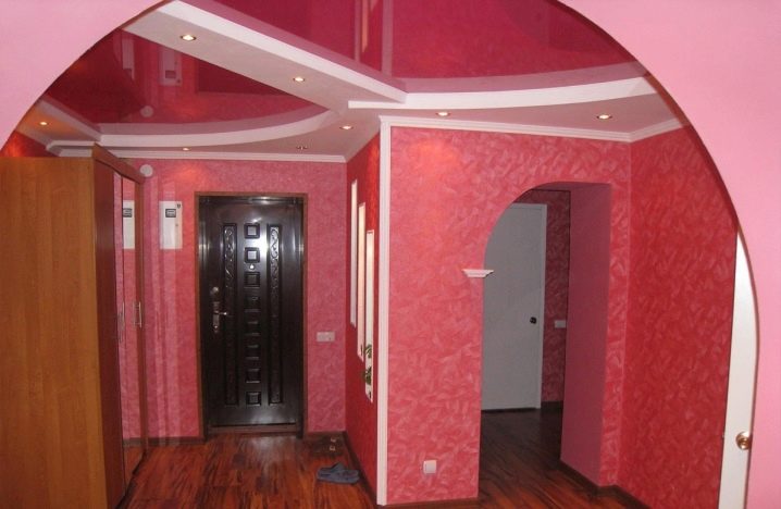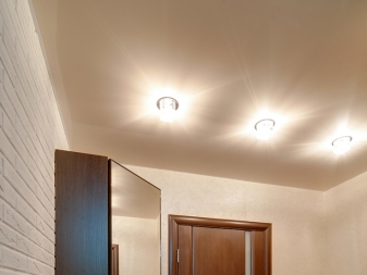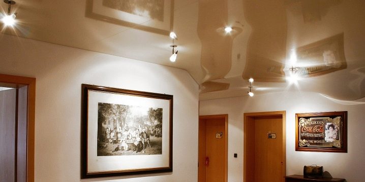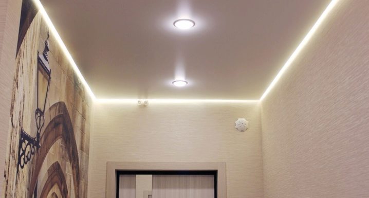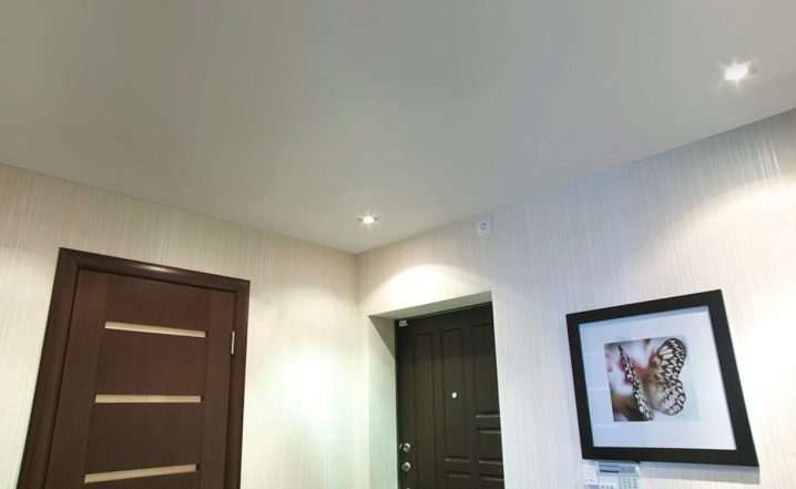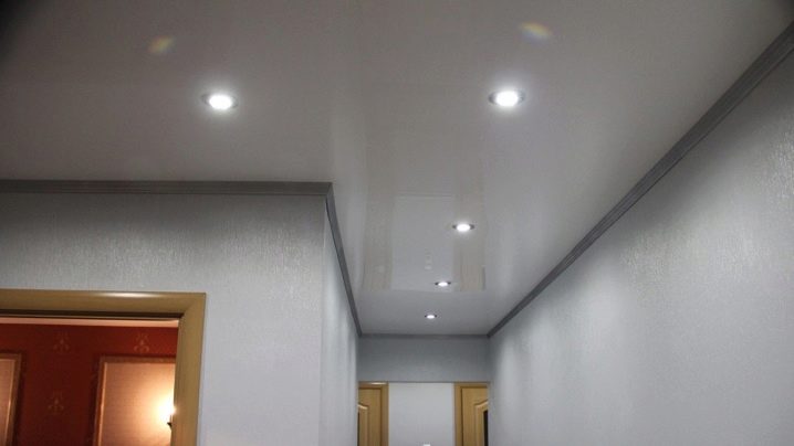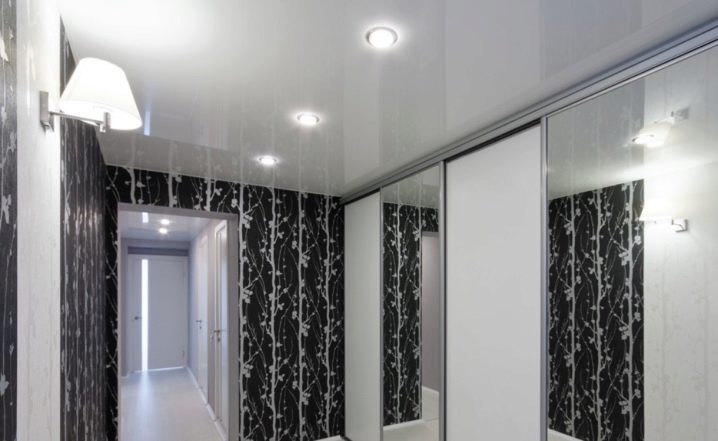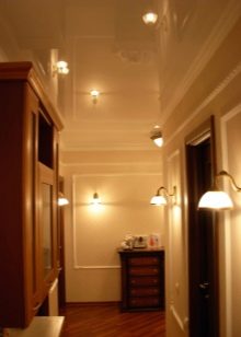 Ако коридорът е малък, тогава за такава малка стая, лъскавите опънати платна ще бъдат истинска находка. Вярно е, че опцията трябва да бъде избрана едноцветна и едностепенна.