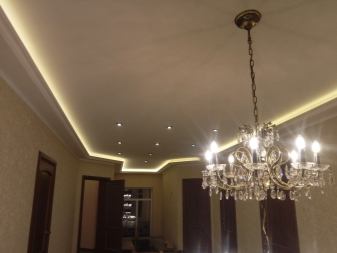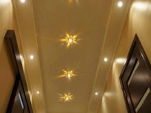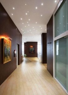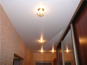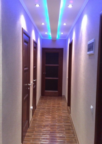 Например, доста е лесно да се използва опънат таван в дълъг коридор (по отношение на инсталацията му) и там ще изглежда много изгодно в комбинация с LED осветление (в края на краищата не е възможно да се закачи полилей във всички коридори ).
