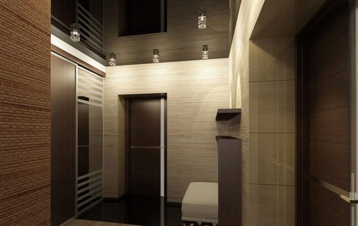 Ако коридорът е с ниска височина, тогава тук се нуждаете от лъскав таван или опънат таван с фотопечат.