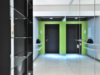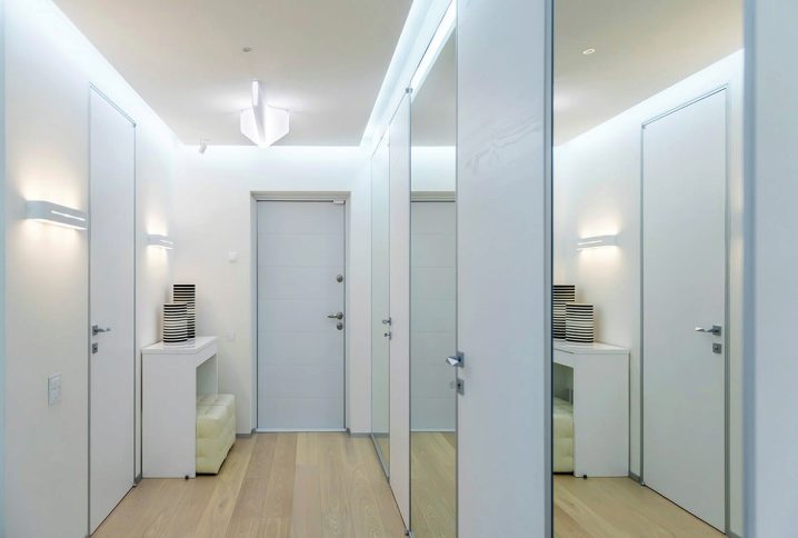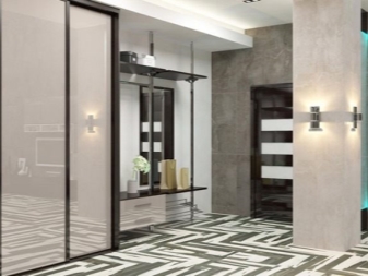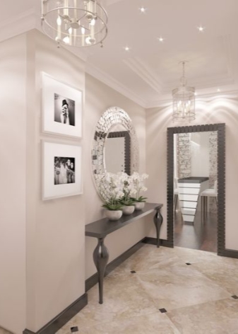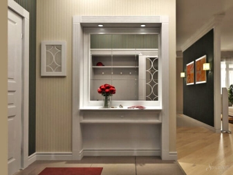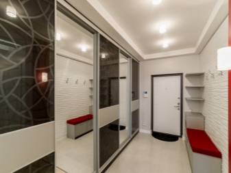 Високотехнологично антре. Големите огледала вършат отлична работа за визуално разширяване на пространството в малък коридор.