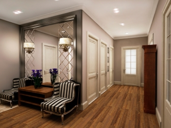 Когато планирате вашето осветление, имайте предвид това не трябва да е тъмно в коридора. Тъмното пространство може да изглежда плашещо. Ако е възможно, коридорът трябва да има естествена светлина, но ако това не е възможно, използвайте вградено осветление и меки светещи аплици. Много добра идея е да използвате големи огледала в коридора. Това ще помогне за визуално разширяване на пространството..