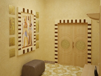 С него можете да придадете на дома си екзотична нотка. Египетският дизайн превръща дома в пространство подобно на галерия с изискан фон за причудливи предмети. На фона на изобилно измазани стени, често с жълт или златен оттенък, картини, статуи на пиедестали и скулптурни мебели изглеждат страхотно. Характеризира се с изобилие от възглавници, които могат да бъдат разпръснати по пода около издълбаната масичка за кафе..