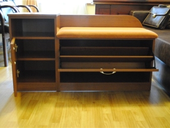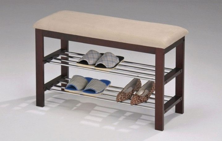 Тези опции имат ясни предимства. Няма да е необходимо постоянно да отваряте и затваряте продукта. Рафтовете ще бъдат вентилирани. Този дизайн обаче няма да ви предпази от прах. Тези опции обикновено са направени от различни материали. Металните изделия са в голямо търсене. Те са много здрави и издръжливи. В същото време ще бъде възможно да седнете удобно на седалката и да се отпуснете. Това може да бъде пейка за обувки. Такава пейка ще ви помогне да се обуете удобно..