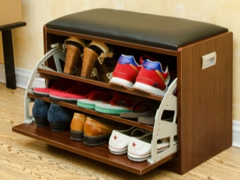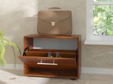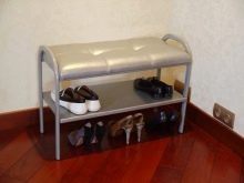 - Функционалност. Поставката за обувки може да се използва не само като елемент за съхранение на обувки. Гостите могат да седнат на него, докато чакат домакините да разгледат интересно списание.
