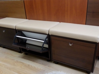- Практичност. Тези опции ще ви помогнат да съхранявате обувките на цялото си семейство, приятели и гости. В същото време удобната седалка ще ви помогне да обуете любимите си ботуши удобно и естествено..