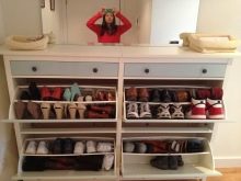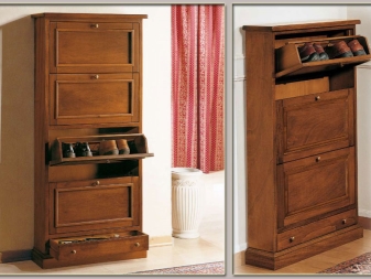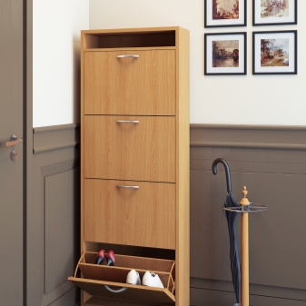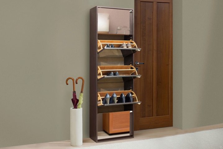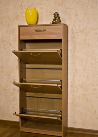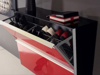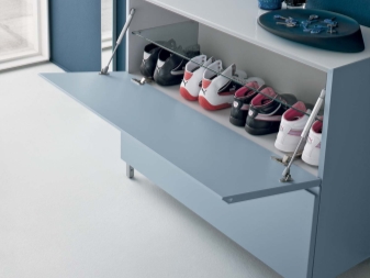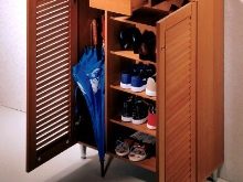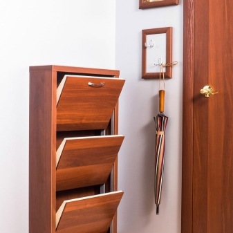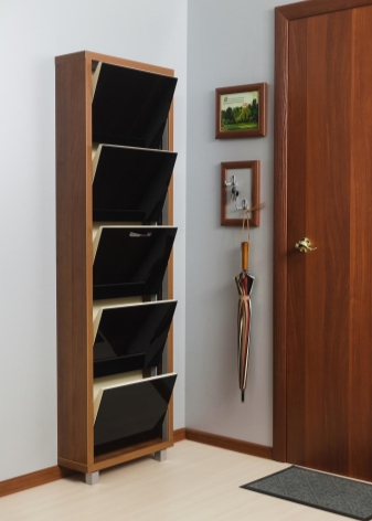 Струва си да се каже, че са измислени много стилни опции за малки коридори. Един от тези модели е шкаф за обувки. На рамката му има специални остриета, върху които обувките са фиксирани. За летни ботуши и обувки лопатките са компактни, за ботуши – високи. Обувките в тях са разположени в изправено положение с подметките нагоре и затова тук е важно да следите състоянието на обувките си..