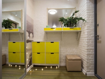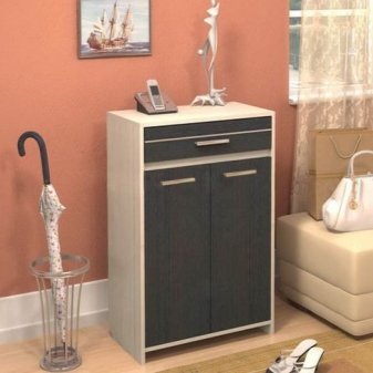 Такъв тандем ви позволява да съхранявате обувки, ключове, гребени и всички допълнителни елементи, които ще ви бъдат полезни в коридора в един дизайн..