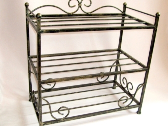 Всеки от горните материали е популярен днес, в зависимост от стила, използван в интериора. Например метален рафт с неговата простота и краткост е просто незаменим за стила минимализъм, докато моделът от ковано желязо е близък до аристокрацията и романтичните тенденции в интериора. Известни прованс и държава днес е трудно да си представим без плавни завои на клонки, деликатни къдрици и шарки от растителност върху поставка за обувки. Не забравяйте, че стоманата е един от най -практичните материали и може да служи, ако е правилно покрита, повече от десетина години..