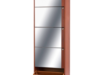 Ярък дизайн в комбинация с допълнително локално осветление и огледална повърхност на гардероба създава свобода и пространство с малък реален размер на коридора. Калъф за обувки-молив в съответствие с основния шкаф ви позволява да поберете голям брой обувки с минимално количество свободно пространство. Затворената конструкция запазва естетическия вид на обувката, предпазвайки я от прах.