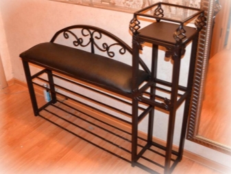 Поставките за обувки или моделите с рафтове могат да бъдат кръгли, което е много удобно, ако има малко свободно място в коридора. Като правило, като метална рамка, те са идеални за модерен и функционален интериор..