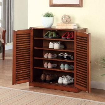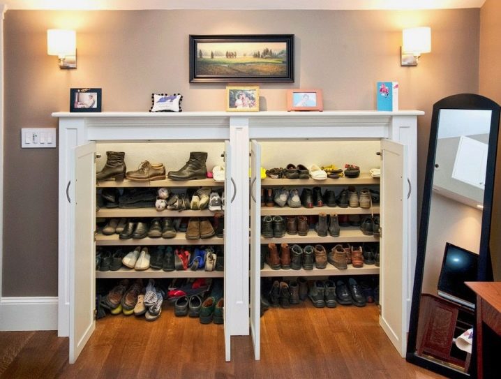 Всеки тип строителство има своите плюсове и минуси. Така че за люлеещи се и сгъваеми изгледи е необходимо повече свободно пространство. Плъзгащите се врати разкриват само част от рафта с обувки, докато плъзгащите се врати заемат част от използваемото пространство вътре в шкафа. Някои модели комбинират отворен и затворен дизайн. Този шкаф ще се впише идеално във всеки интериор и ще предпази любимия ви чифт обувки от прах и домашни любимци..