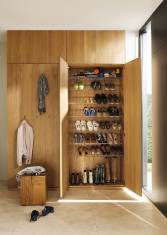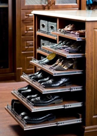 Този модел ще бъде оценен от любителите на модерния и фюжън стил. Много необичайна, компактна и удобна система за съхранение на обувки.