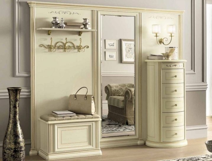 Стойките рядко се използват като отделна мебел. Дизайнерите предлагат такива модели, които комбинират няколко функции. В бюфетите-скринове горната част може да действа като плот за декоративни предмети, чанти, парфюми, козметика, часовници или портфейли. На стената до вас можете да поставите огледало или закачалки за съхранение на връхни дрехи, като същевременно ще спестите място и ще подредите всички неща на тяхно място. Например, модел с огледало ще ви спести от необходимостта да закупите допълнително огледало в коридора, а опцията със закачалка ще ви позволи да организирате правилната система за съхранение не само за обувки, но и за връхни дрехи. Когато избирате затворен скрин, трябва да обърнете внимание на вида на вратите.