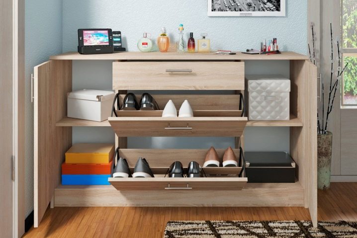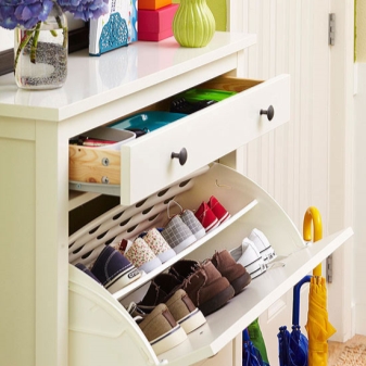 Ако първите модели приличаха на нисък шкаф с врати, които се отварят навън, тогава съвременните дизайнери на мебели предлагат различни видове стелажи за обувки в коридора, които се използват като шкаф, тоалетка или миниатюрен диван. Тумбата може да бъде на пода или окачена, по вида на конструкцията – отворена или затворена, по размера – широка или тясна, по формата – линейна и ъглова. При отворени модели обувките изсъхват по -бързо, а цената на такива пиедестали е много по -ниска.