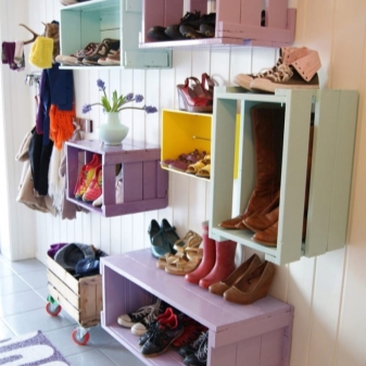 Можете да направите стилни и необичайни поставки за обувки от дървени кутии със собствените си ръце. Предимствата включват уникален дизайн, необичайно стилно решение и възможност за поставяне на различни видове обувки: от летни сандали до високи ботуши.