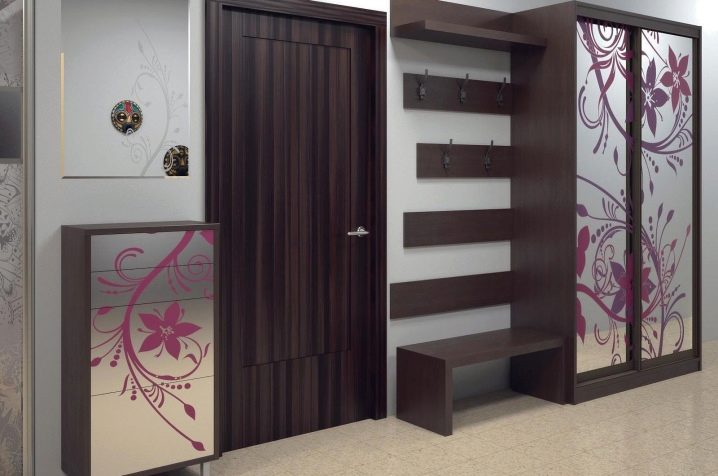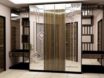 Дизайнът на мебелите може да бъде възможно най -лаконичен или по -интересен. Най -простият вариант са обикновените продукти. Гланцовите или матовите повърхности се вписват еднакво добре в почти всеки дизайн. Шкафове със съединител за карета или масивни мебели, украсени с ковани детайли, ще привлекат вниманието, но отделение с огледална врата, напротив, ще бъде възможно най -невидимо.