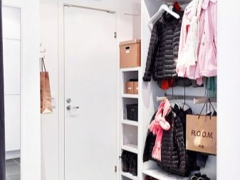 За да ви бъде по -удобно да съхранявате вещите си дори в толкова малко пространство, струва си да завършите килера възможно най -много. Вътрешното му съдържание може да бъде всичко, което харесвате, в зависимост от вашите предпочитания. На първо място, трябва да определите къде ще се съхраняват всички основни неща. За да направите това, струва си да инсталирате закачалка и няколко рафта наведнъж. Така че можете правилно да съхранявате връхни дрехи, шалове и други гардероби..
