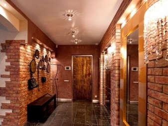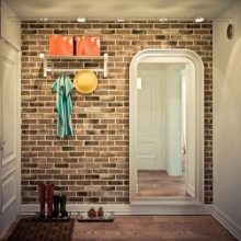 Тухла в интериора изглежда стилна и скъпа. Тъй като естественият материал с интересна структура е един от най -скъпите, често вместо него за коридора се използва тапет с имитация на тухла..