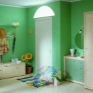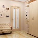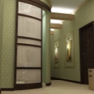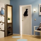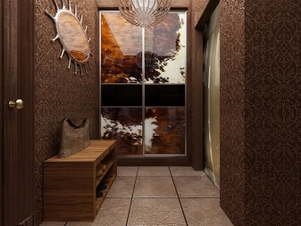 По -добре е да залепите стената до вратата с тапет няколко нюанса по -тъмен. Това е полезно от практическа гледна точка. Тапетите с ефект на прожекция или украсени с малък модел ще помогнат за визуално разширяване на обемите..