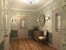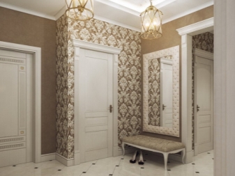 - Класически. Въпреки факта, че ярките нюанси заеха водещите позиции през сезона, класическите и меки тонове не губят своята актуалност. Палитра от бяло и различни светли и меки цветове е най -доброто решение за малки коридори. За да бъдат в крак с модните тенденции, експертите препоръчват да изберете опции, декорирани с шарки и стилни щампи..