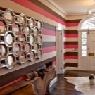 Дизайнерите използват горната техника, за да постигнат специфичен ефект. С помощта на изключителна комбинация можете да се съсредоточите върху определена област от стаята или обекта (рисуване, огледало, снимка и т.н.). Често срещан случай е, когато след ремонт и декорация на стени, интериорът изглежда скучен и избледнял. Това може да се случи, ако прекалите с неутрални нюанси. Добавянето на ярки цветове и шарки ще разреди декора и ще го украси.