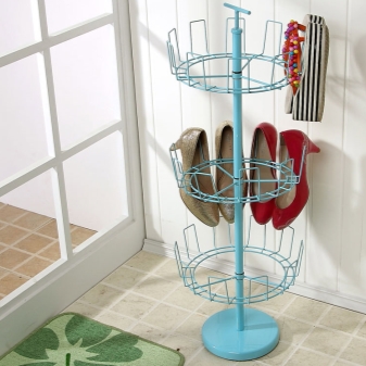 Стоманата се счита за най -универсалния материал. Правилно обработените хромирани метални стелажи за обувки изглеждат прилично, позволяват на обувките да изсъхнат правилно и имат достъпна цена. Те са идеални за минимализъм и други съвременни стилове. Въпреки това, дори и за романтични стилове, моделите от страната и прованс изглеждат печелившо, при условие че са допълнени с детайли от коване.