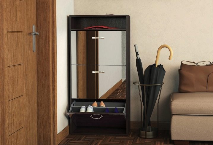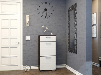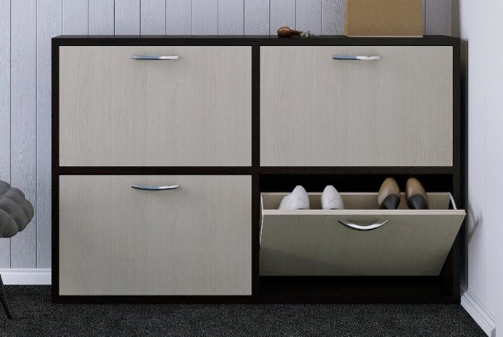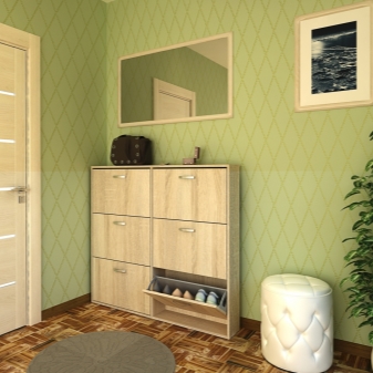 Стилен шкаф за обувки, който заема малка ниша на основния шкаф, ви позволява да използвате всяко полезно свободно пространство.