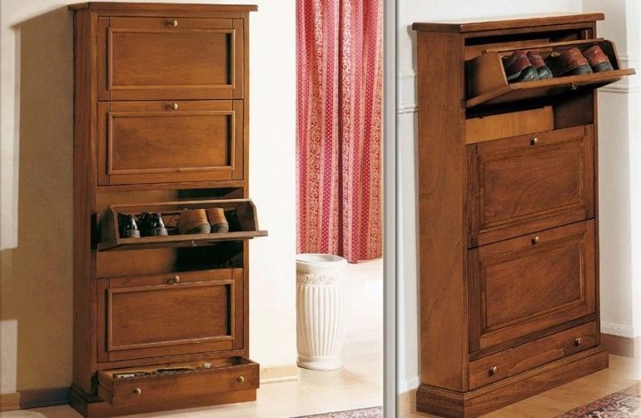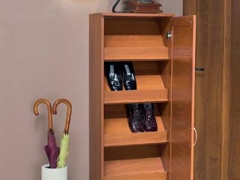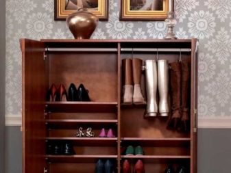 За разлика от отворените широки рафтове, тесните коридори в затворени версии се грижат за състоянието на обувките. Външното влияние, утаяването на прах и възможността от механични повреди от животни са напълно изключени тук. Атрактивността на двойките вътре се умножава по външната естетика на багажника за обувки. Красиви ковани детайли, масивно дърво, хромирана стомана – всичко това позволява на собственика на рафта да се гордее с такъв практичен и стилен елемент в интериора..