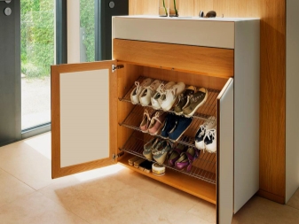 Цената на моделите, изработени по поръчка, малко надвишава готовите фабрични шкафове за обувки, но, виждате ли, ежедневният комфорт и ред в коридора си заслужават.