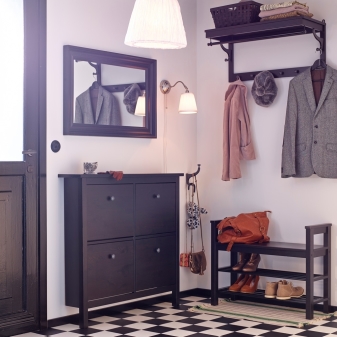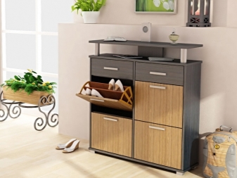 Ниските модели са допълнени със седалка и са доста удобни, въпреки че се побират само в няколко чифта обувки. Тази ситуация се дължи на наличието на един или максимум два рафта, в противен случай ще бъде невъзможно да седнете на такъв модел..