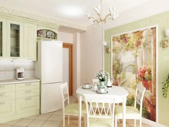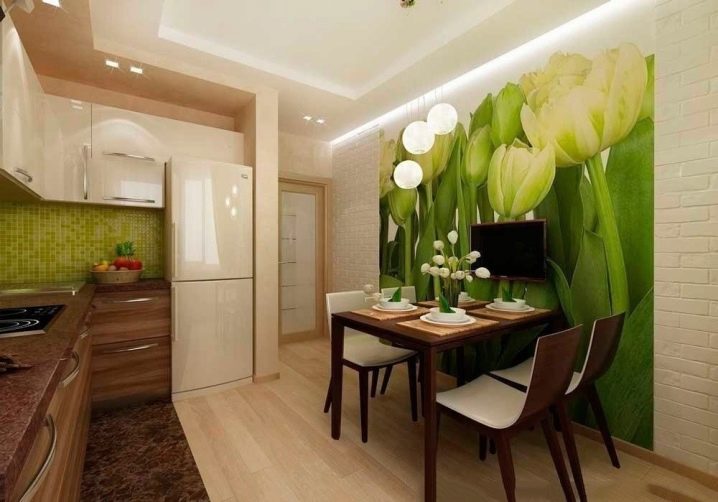 Малка кухня кара собственика си да си счупи главата старателно, избирайки отпечатък върху тапета, който може да се използва за украса на такава стая. Опитните дизайнери съветват да се даде предпочитание на сцени, които имитират панорамна гледка от прозореца, тъй като подобно решение предвидимо ще разшири пространството и въпреки че все още ще бъде тесно, за да се побере в него, психологически ще стане малко по -лесно за членовете на домакинството. Добри в такива условия и “хранителни” теми, които преди са били изобразени на платното на известни художници, изглеждат – натюрморти.