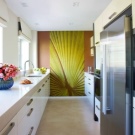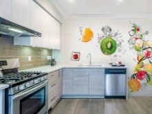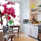 Ето защо в кухня, проектирана в спокоен мащаб и без резки промени в цвета, трябва да се даде предпочитание на стереоскопичен тапет с някакво ярко изображение и не е страшно, ако не се припокрива с нещо друго в стаята. В такава ситуация дори известно разнообразие и петна от картината са добре дошли..