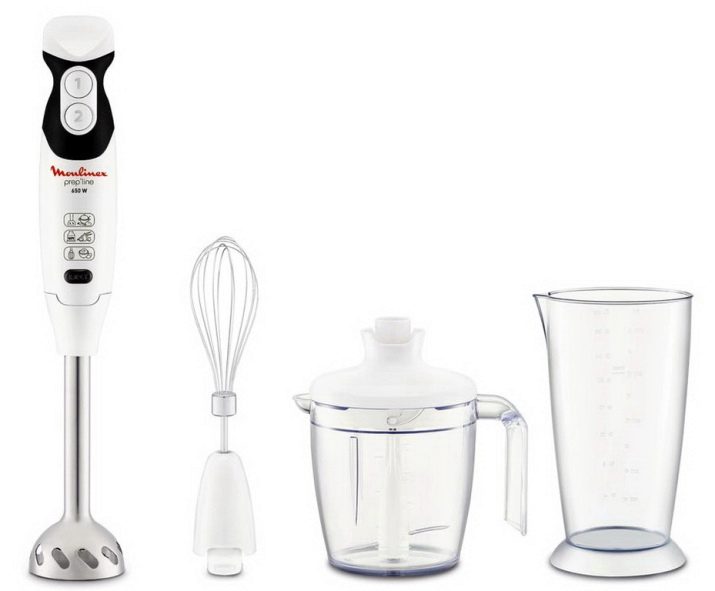 Смесителят Moulinex OptiPro 600w има подобни характеристики. Това също е потопяем модел, изработен от висококачествена неръждаема стомана. Той се различава от предишния модел с по -ниска мощност – 700 W, което също позволява на устройството да се справя с трудни продукти. Това устройство е оборудвано с шест режима на скорост, които могат удобно да се превключват. Устройството е оборудвано с импулсен режим и турбо режим. Комплектът включва мини мелница.