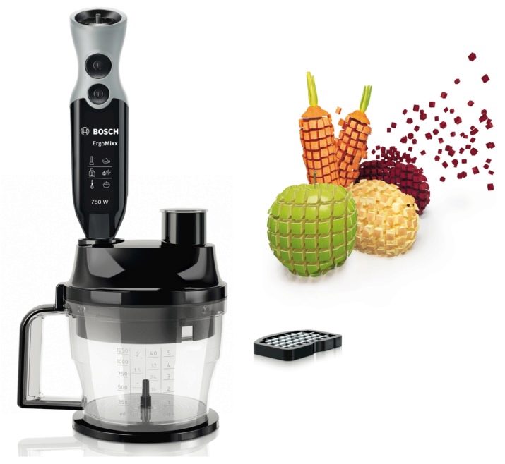 По правило рядко се произвеждат блендери с нарязан на кубчета зеленчуков нож. Можете да закупите дюза отделно, а цената й зависи от материала на производство и марката на производителя. Сам по себе си той прилича на удължена форма с метални пластини, опънати по протежение на и през: прекарване на зеленчуци и плодове през тях, натрошени на кубчета.