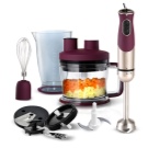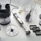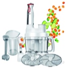 - допълнителни части: бъркалка, остриета за триене на храна, ускорен режим на разбиване на течности, приставка за нарязване на храна на филийки и кубчета.