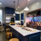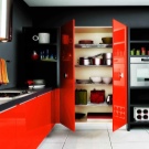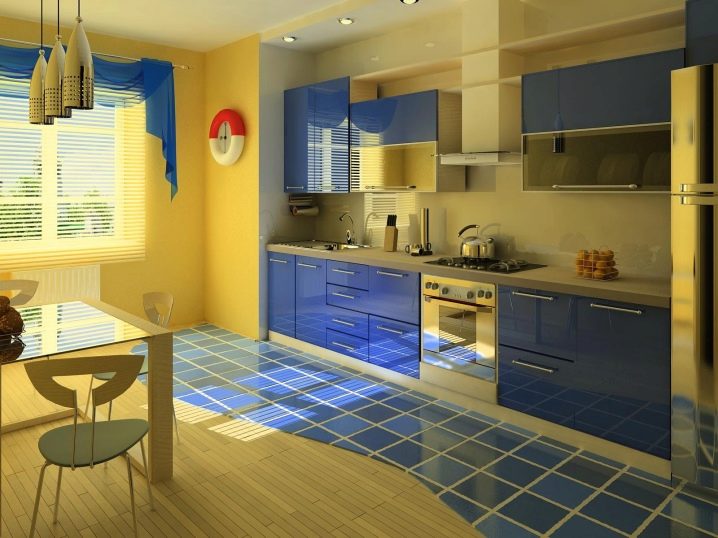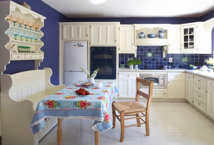 - синьо – не е много свързано с храната, потиска апетита, в резултат на което рядко се използва за боядисване на стени в кухнята;