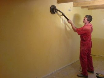 В резултат на това не се появяват нови недостатъци под формата на пукнатини. Отгоре се разпределя шпакловка, за да се изравнят дребните дефекти. След изсушаване всички измазани стени се шлайфат с помощта на повърхностна шлифовъчна машина или кръгови движения на пръчка с шкурка. За този процес е важно яркото осветление, което ще ви позволи да видите всички малки дефекти. Поради смилането се появява много прах, така че трябва да използвате респиратор. За да избегнете навлизането на прах в кухнята, можете да използвате мокри кърпи, които трябва да се поставят на прага и на прага.