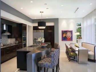 Когато създавате интериор с помощта на оцветяване, можете да зонирате кухнята. Комбинирайки различни тонове и нюанси, разделете кухнята според функционалните характеристики.