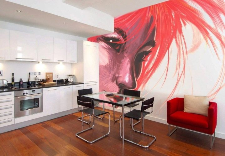 Напоследък стенописът стана особено популярен. За да направите това, трябва да имате талант за рисуване. В негово отсъствие е по -добре да поканите професионален художник, който може да покаже най -успешните примери за рисуване по стените и да помогне за реализирането на най -смелите идеи при създаването на уникален стил. Тази работа е трудоемка и често отнема няколко дни, но резултатът си заслужава. Кухненското пространство се трансформира и придобива изключителен вид.