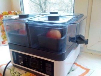 Разбира се, чудесно е, че самото устройство дава знак, когато нещо липсва, но факт е, че този звук не се изключва, дори когато се добави необходимия обем течност. Съответно трябва да изключите и след това да включите отново парахода, за да продължи готвенето. Въпреки факта, че едно покритие може да се побере на всяко ниво, те са различни по размер, поради което не са взаимозаменяеми.