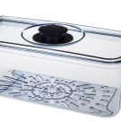 Високото качество на изработка на парахода, както и самите материали, не могат да не зарадват, освен всичко останало се добавя атрактивен външен вид, който ще бъде подходящ във всяка кухня. Всяко ниво има подвижно дъно, така че параходът може да се сгъне доста компактно. Въпреки различните размери на отделенията, капакът на всяко от тях ще се побере на другото без никакви проблеми. Удобството при носене на F500 се осигурява от специални дръжки, а гумените крачета ще ви позволят да запазите повърхността на кухненския плот, без да го надраскате или повредите..