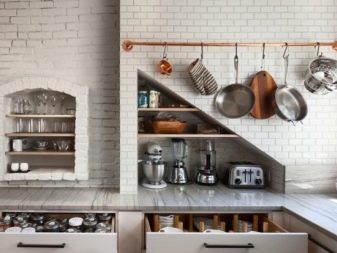 - За голяма просторна кухня, не се колебайте да изберете дълга релса. На него можете много удобно да поставите всички кухненски прибори..