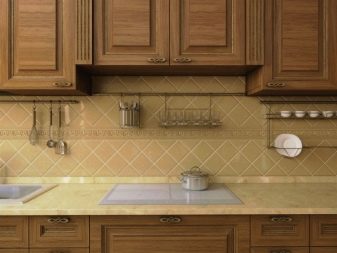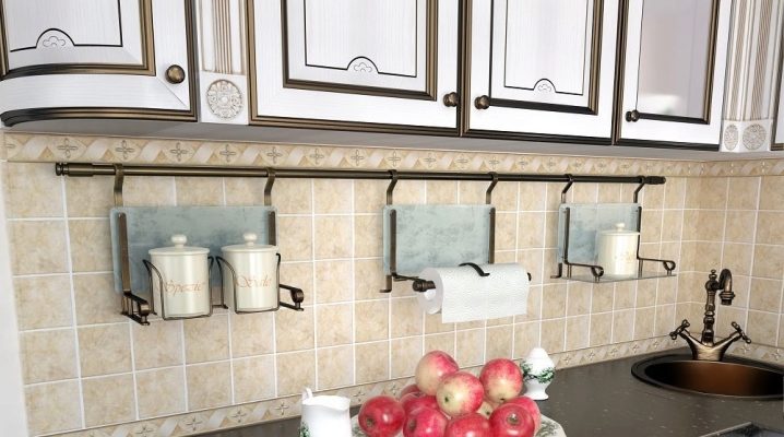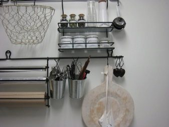- Ако вашата кухня има много малко място, тогава не трябва да поставяте много прибори върху парапета с рима, това може да създаде ефект на затрупване. Поставете само най -важните аксесоари на кухненската стена.