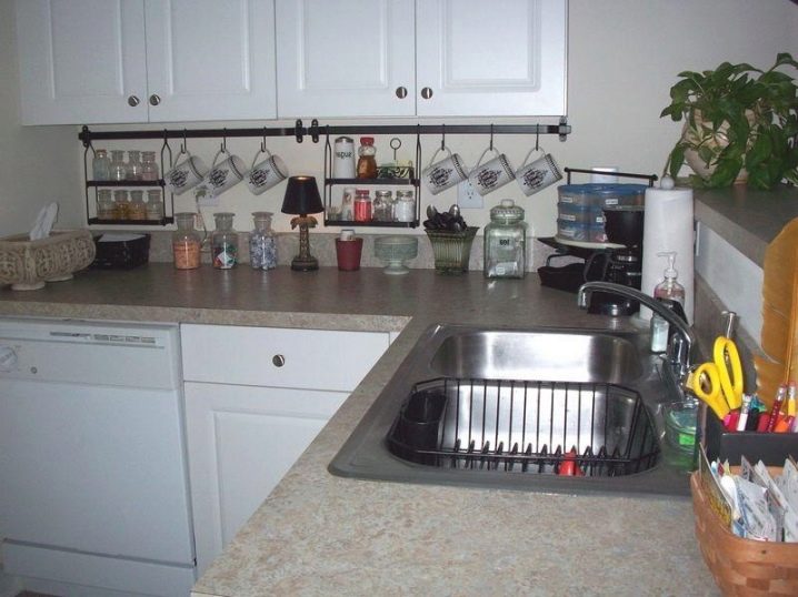 Преведена на руски, думата "парапет" може да се преведе като релса или напречна греда. Всъщност релсата е тясна метална тръба, която е прикрепена към всяка кухненска повърхност – стена, таван или плот. Всички видове рафтове и куки са адаптирани към тази тръба с помощта на определени крепежни елементи. И вече върху тях можете удобно и компактно да подредите всички кухненски прибори – черпаци, лъжици и много други кухненски аксесоари, които винаги ще са ви под ръка..