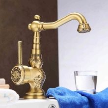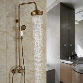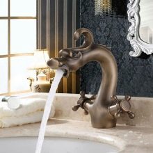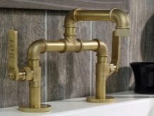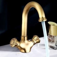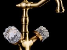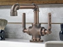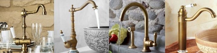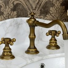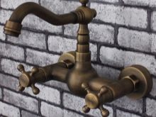 Във винтидж стил бронзовите кранове също изглеждат добре. Като правило те се комбинират със снежнобяли или, напротив, цветни (по-често черни) мебели, санитарен фаянс.